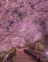 - 석양과 벚꽃: 해 질 무렵 붉게 물든 하늘을 배경으로 한 벚꽃의 실루엣